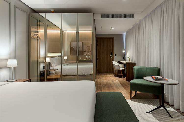 São 120 apartamentos, com 2 suítes exclusivas. Os quartos são amplos e trazem design sofisticado. Oferece internet wi-fi, TVs Smart em todos os apartamentos, serviços Dog Friendly e quartos conjugados para famílias. Venha viver uma experiência de autenticidade e exclusividade em São José/SC, a apenas 7km de Florianópolis. O K-Platz Hotel oferece o máximo de conveniência e design, com um mixed use completo a apenas um elevador de distância.